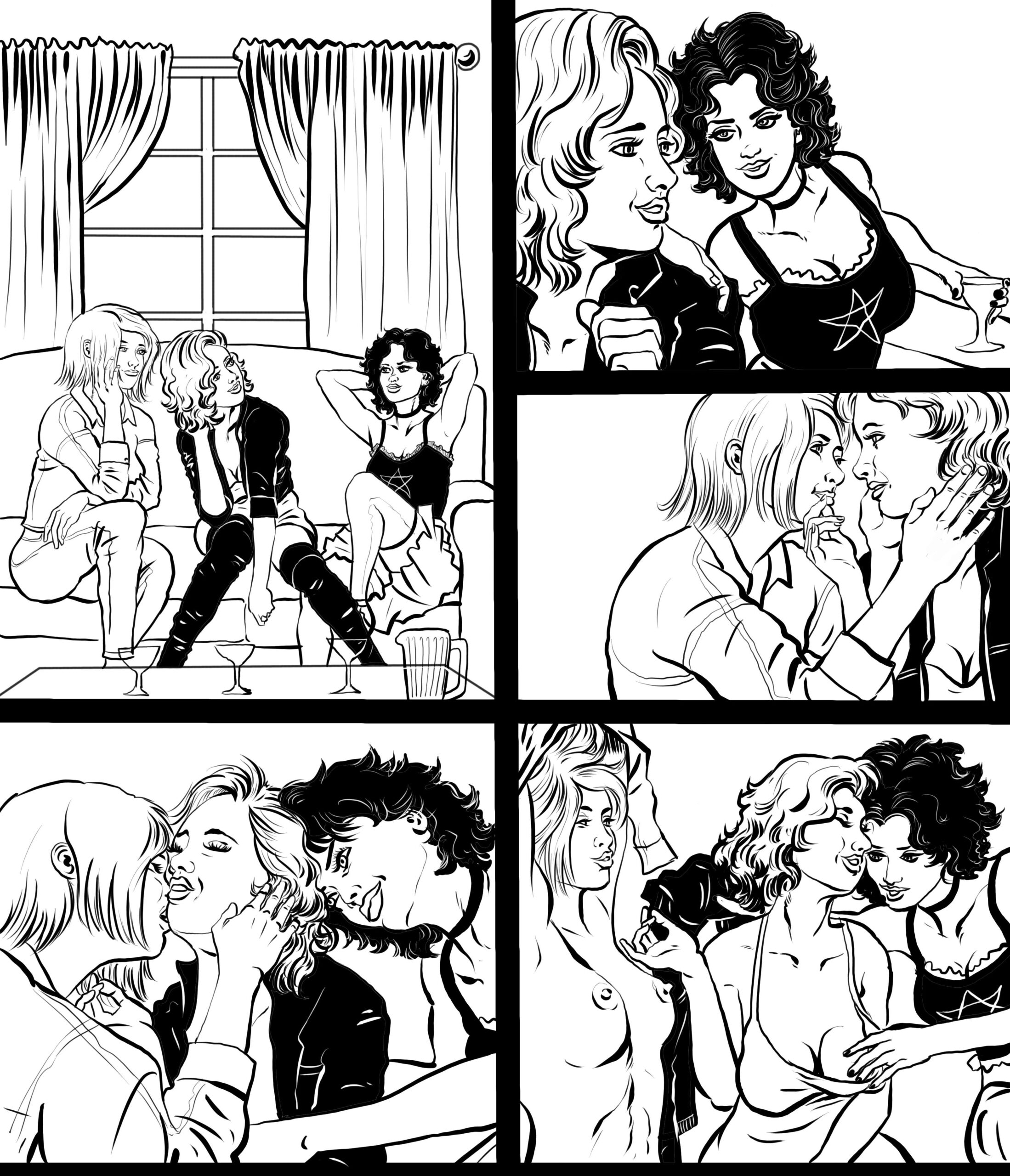 As for the latest Midnight Edition comic, it should be up by now. And for those who don't know it, becoming a Patreon at just the five dollar level gets you a monthly comic detailing some more of the 'spicier' parts of the comic. The latest storyline? Just what happened to Devon that night on New Years. Here's a short black and white preview.